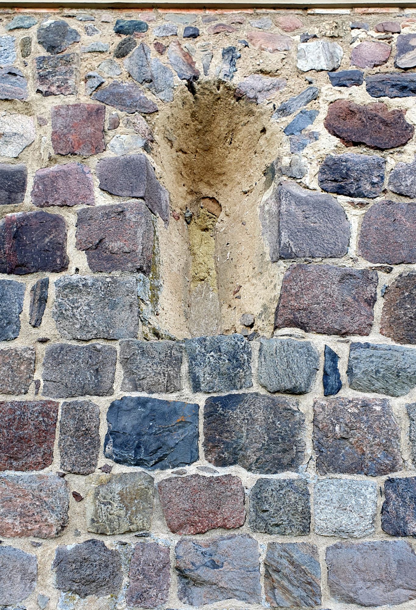 - Mauerwerk aus quaderförmig behauenen Feldsteinen in geordneten Lagen